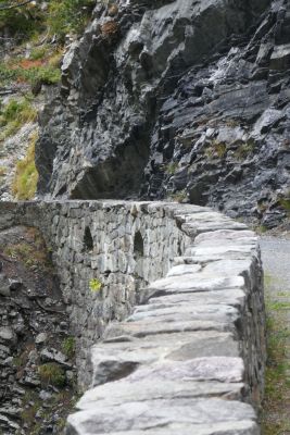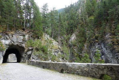 Vor der Bahn wurde die Strasse durch die Zügen gebaut, eröffnet 1873. Endlich führte eine "bequeme, breite Strasse" durch die Schlucht, jedoch weitgehend Lawinen und Steinschlägen ausgesetzt.