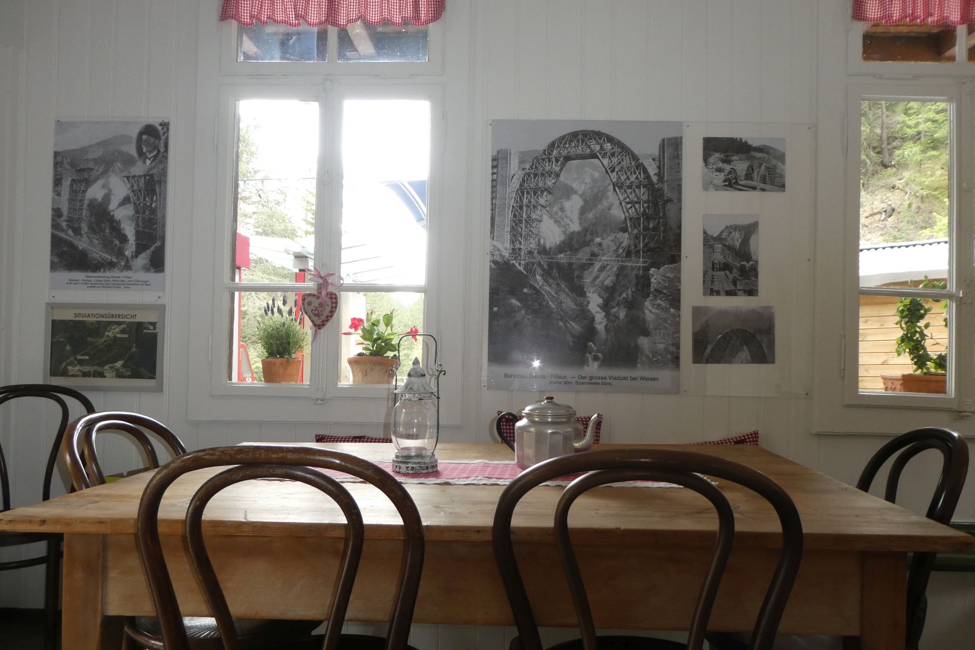 Die permanente Ausstellung im Wartsaal der Station Davos-Wiesen informiert über die Geschichte des Bahn- und Brückenbaus in der Zügenschlucht.