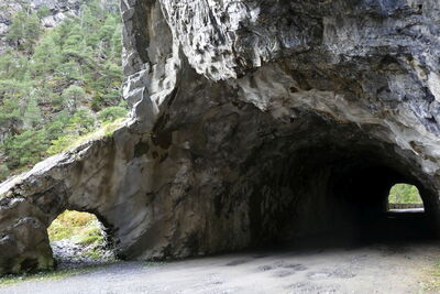 Vor der Bahn wurde die Strasse durch die Zügen gebaut, eröffnet 1873. Endlich führte eine "bequeme, breite Strasse" durch die Schlucht, jedoch weitgehend Lawinen und Steinschlägen ausgesetzt.