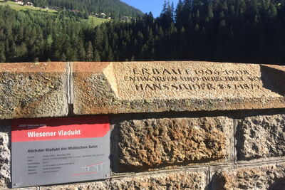 Der Wiesnerviadukt ist die höchste und grösste Mauerwerksbrücke der Rhätischen Bahn. Weiter erfahren Sie Spannendes über den Bau der Linie Davos-Filisur, die der Natur des Landwassertales und der wilden Zügenschlucht vor über 100 Jahren abgetrotzt wurde.