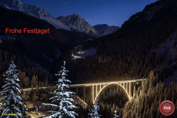 Vom 28. November bis zum 23. Dezember 2019 verschmelzen im RhB-Park Bündner Bahnkultur und vorweihnächtliche Stimmung. Eine besondere Attraktion ist die Lichtprojektion an die Fassade des Verwaltungsgebäudes.