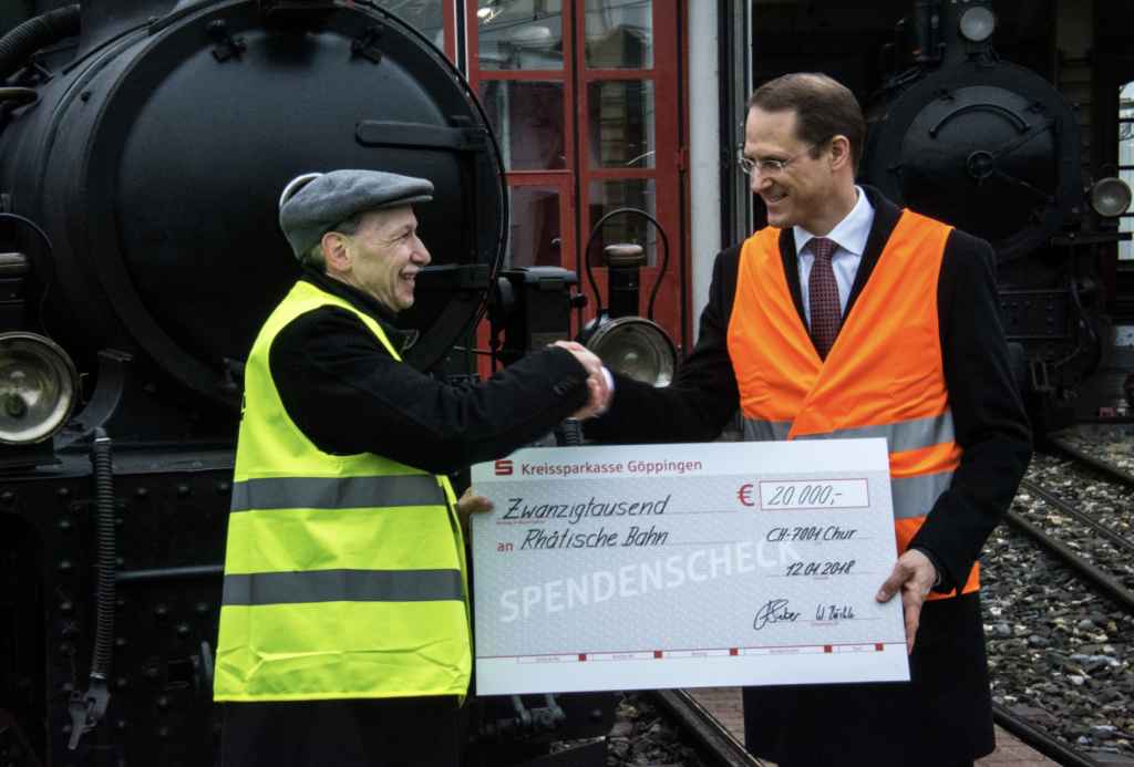 Die RhB führt eine langjährige Partnerschaft mit der LGB Gartenbahn. Vor 40 Jahren produzierte die LGB ihr erstes RhB-Modell, eine Krokodillokomotive. Seither sind die RhB-Modelle wichtiger Umsatzbestandteil von LGB und Sympathieträger. 2017 lancierte die LGB die RhB-Dampflokomotive Nr. 1 mit dem Namen «Rhätia» im Modell. 50 Euro für jedes verkaufte Modell, insgesamt 20‘000 Euro, spendet die LGB nun anlässlich des Auftaktevents für die Revision ebendieser G 3/4 «Rhätia».