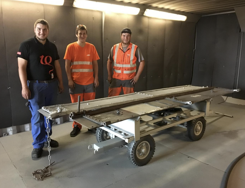 Die Jugendgruppe des Club 1889 hat am 8.9.2018 mit der eigentlichen Restauration des Niederbordwagens M 7070 von 1903 bei der Terno AG in Küblis begonnen. Nach der Inspektion der Werkstätte, welche vom Prättigauer Stahlbauunternehmen kostenlos zur Verfügung gestellt wird, wurden alle Seitenladen und die Stirnfront des Wagens mit Hilfe eines Hubstaplers demontiert und fürs Sandstrahlen bereit gestellt. Verrostete und verhockte Schrauben mussten vorgängig mit dem Schweissbrenner bearbeitet werden. Erste Seitenladen wurden von Urs Wild, welcher für die Terno AG arbeitet und dieses Projekt tratkräftig mit unterstützt, gesandstrahlt. Wie eine Inspektion der Bauteile durch Co-Projektleiter Samuel Mohr zeigte, müssen einzelne Stahlteile ersetzt werden, da diese durchgerostet und sehr stark verbogen sind. Es sollen aber so viele originale Bauteile wie möglich erhalten bleiben.