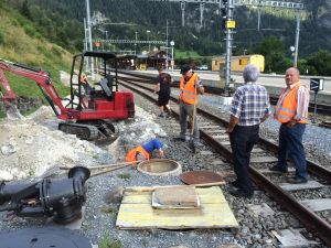 Die Situation in Filisur zur Dampfzeit mit vier Wasserkränen.