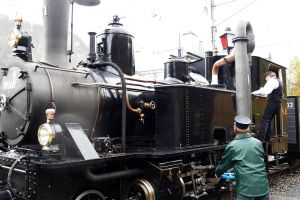 Ein besonderer Anlass zur Einweihung: Die G 3/4 11 (Heidi) bei der Holsboer-Memorial-Fahrt am 14. Oktober 2016.
