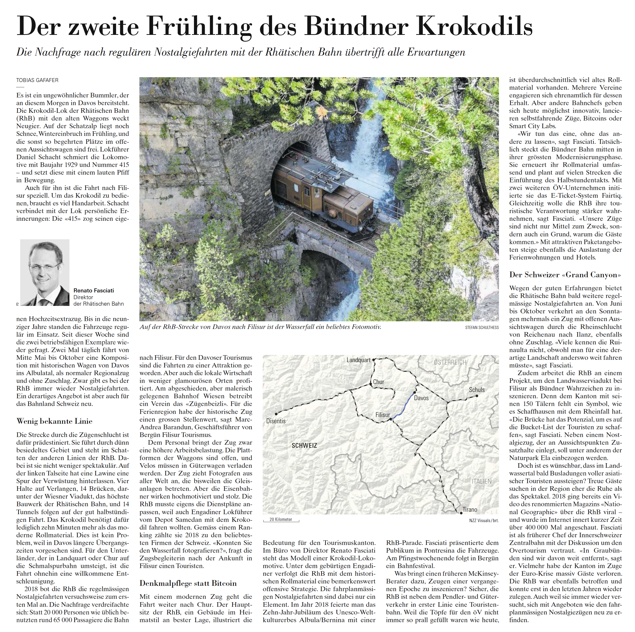 Vom 11. Mai bis 27. Oktober 2019 stehen zwischen Davos Platz und Filisur zweimal täglich historische Zugkompositionen aus den 1920er-Jahren im Einsatz. Geniessen Sie eine Fahrt mit der Kult-Lokomotive Krokodil zusammen mit den grünen nostalgischen Holz- und dem offenen Aussichtswagen entlang der wildromantischen Zügenschlucht und über den imposanten Wiesnerviadukt bis nach Filisur. Hier um die Ecke ist auch die Heimat des weltbekannten Landwasserviaduktes - das Herzstück des UNESCO Welterbe RhB. Unser Tipp für einen perfekten Ausflug: Ein Besuch des Bahnmuseums Albula in Bergün.