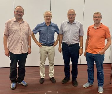 Nach der Demission von Claudio Lardi hat sich nun auch die «alte Garde» des Vorstandes verabschiedet. Unser Bild zeigt die Zurückgetretenen anlässlich der 17. DV historic RhB (von links nach rechts): Christoph Bucher, Aktuar; Geni Rohner, Geschäftsführer; Koni Zingg, Präsident ad-interim und Enrico Pirovino (Vertreter FdS).
